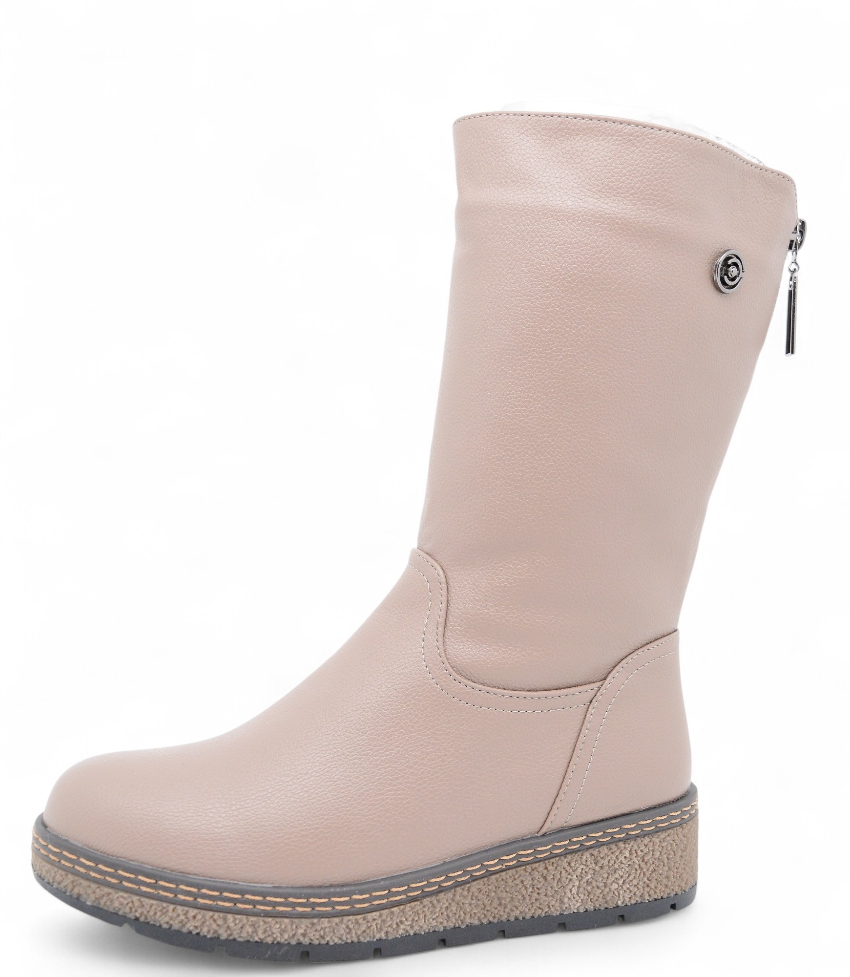 Сапоги, Экокожа/Шерсть/Бежевый